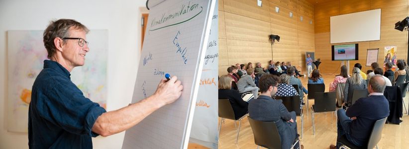 5 Präsenztage (ganztags) + 4 ONLINE-Module (je 1-1,5 Std) + ONLINE-Abschlussgespräch