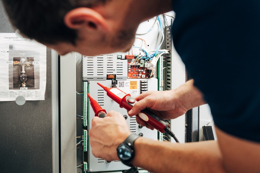 - Technikzentrale im Plusenergiehaus mit Photovoltaikanlage in Wald (Stromerzeugender Pelletkessel, Pelletbrennwertanlage, Stückholzkessel, Trinkwasserhygiene, Wärmepumpe Luft und Erdwärme, Wohnraumlüftung, Solar, Autoladestationen, PV und Batteriespeicher, Energiemanagement, Moderne Elektroinstallation)