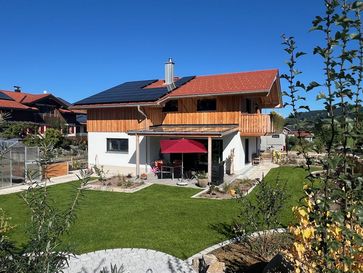 Das Neubauprojekt hatte das Ziel sich in die bestehende Landschaft und den Baustil des Oberallgäu zu integrieren. Hierbei wurde darauf geachtet, dass natürliche und biologische Baumaterialien verwendet wurden. Vor allem die Jasmin-Hausdämmung (in Lehm getränkte Holzspäne) sorgt für ein unheimlich gutes Wohnklima. Zudem sorgen die großen Dachüberstände für eine natürliche Beschattung. In Summe ist ein vollbiologisches Holzhaus entstanden.