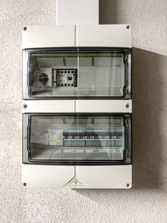 Zum Einsatz kommt eine Wasser/Wasser-Wärmepumpe mit 10–36 kW Leistung, ausgestattet mit Schnittstelle zur Photovoltaikanlage und integriertem Energiemanagement. Sie ist Smart-Grid-fähig