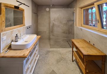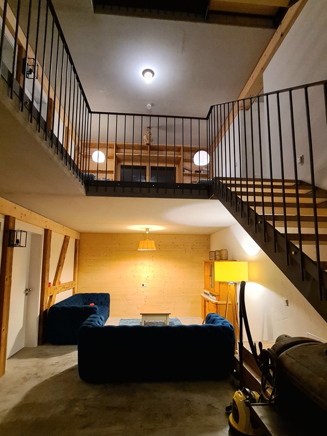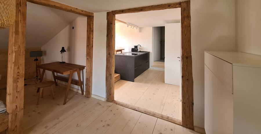 Wohnhaus, Hostel-Gästezimmer in ehemaliger Tenne. Alle Nassbereich im / über