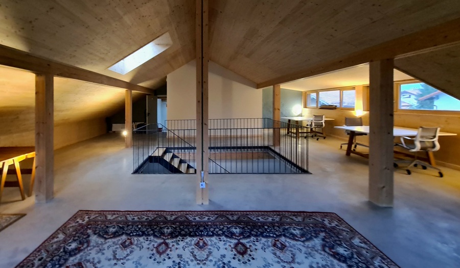 Wohnbereiche, CoWorking-Arbeitsplätze und eine große Bauernhausküche.
