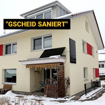 „gscheid saniert“ – unter diesem Motto stellt eza! zweimal im Jahr beispielhafte Gebäudesanierungen vor. Den Anfang machte das Haus der Familie Bader in Waltenhofen – ein Fertighaus Baujahr 1976, das zum Effizienzhaus 70 saniert wurde. Bereut haben Thomas Bader und seine Frau die Entscheidung gegen einen Neubau und stattdessen für die Komplettsanierung eines Bestandsgebäudes noch keine Minute. Auch weil sie ihr Haus top saniert haben und den hohen Wohnkomfort bei sehr niedrigen Energiekosten richtig genießen können. „Ein Neubau wäre 200.000 Euro teurer und das Grundstück deutlich kleiner gewesen“, erklärt Thomas Bader.