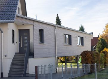 Erweiterung mit optimaler Ausnutzung des langen, schmalen, geneigten Grundstückes